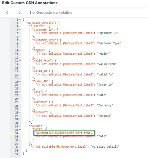 In der CSN-Annotation fügen wir die Angabe @Semantics.businessDate.at : true hinzu.
