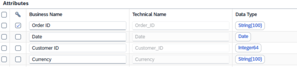 Diese Tabelle umfasst die Verkaufsattribute, darunter: