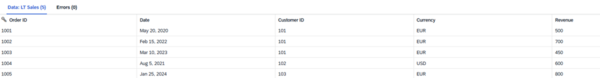 Als nächstes erstellen wir die Tabelle „LT Sales“, die Verkaufsdaten beinhaltet.